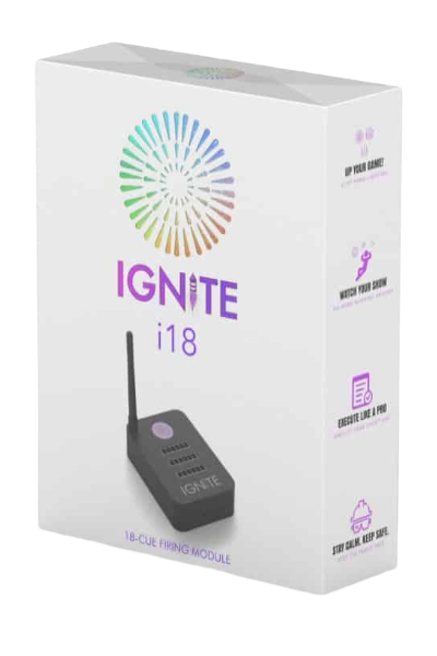 The IGNITE i18 is a compact, 18-cue firing module supporting both free-shoot manual and fully automated shows.